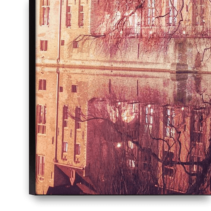 Ihre gewählte Kunst auf Leinwand, gespannt in einem Aluminiumrahmen. Schnell und einfach austauschbar für eine frische Ausstrahlung und ganz nach Ihren Wünschen.