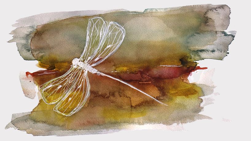 Die Libelle – spüre den Sommer, sieh die Erdtöne dieses Aquarells. Es strahlt etwas Mystisches aus.