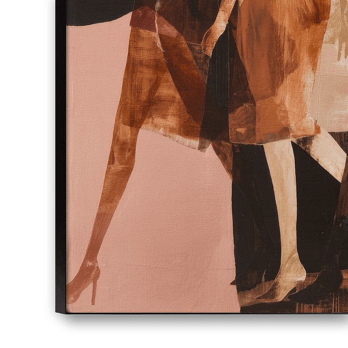 Die warmen Töne von Terrakotta, Nude und Tiefbraun vermitteln Ruhe und Stärke zugleich, während die abstrakten Pinselstriche ein Gefühl der Bewegung hervorrufen - als kämen sie direkt vom Laufsteg.