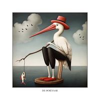 Der Storch - aus der Serie Living Heritage - mit Rahmen und Text. Dieses Werk wurde in Zusammenarbeit mit künstlicher Intelligenz erstellt.