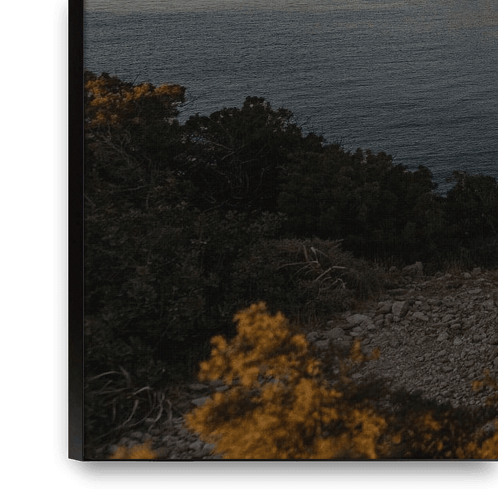 Ihre gewählte Kunst auf Leinwand, gespannt in einem Aluminiumrahmen. Schnell und einfach austauschbar für eine frische Ausstrahlung und ganz nach Ihren Wünschen.