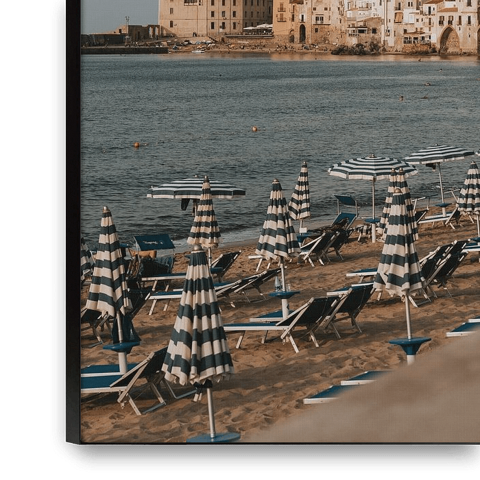 Bestelle dieses Landschafts-Wandbild Der Strand von Cefalu mit Blick auf die Stadt, Sizilien Italien von Manon Visser als Reproduktion auf Leinwand, Alu-Dibond, als Poster, Fototapete oder Acrylglasbild.