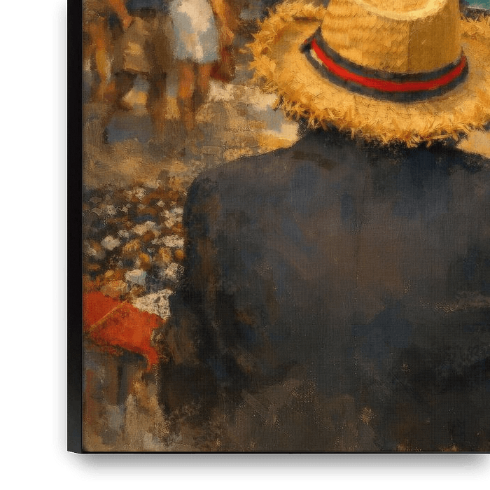 Bestelle diese Malerei Der Straßenverkäufer von Geert Van Baelen als Reproduktion auf Leinwand, Alu-Dibond, als Poster, Fototapete oder Acrylglasbild.