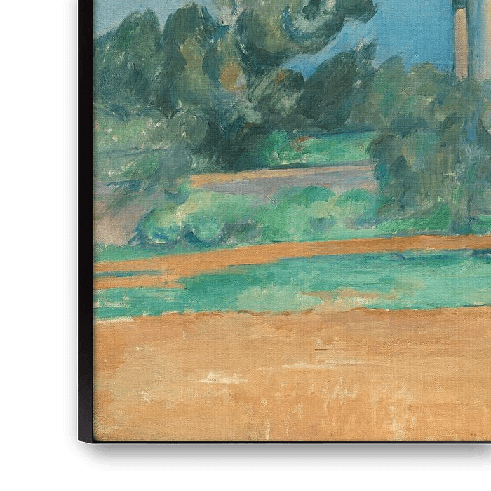 Cézanne war einer der ersten Künstler, der mit dem Impressionismus brach und sein Interesse an atmosphärischen Effekten durch eine neue Betonung der geometrischen Struktur ersetzte. Zwischen 1888 und 1892 malte er zwei Ansichten des Taubenturms im Haus seines Schwagers in Bellevue, einer kleinen Stadt in Südfrankreich. Um den Turm zum Mittelpunkt der Komposition zu machen, hat Cézanne seine zylindrische Form übertrieben und ihn nach oben und links verlängert.