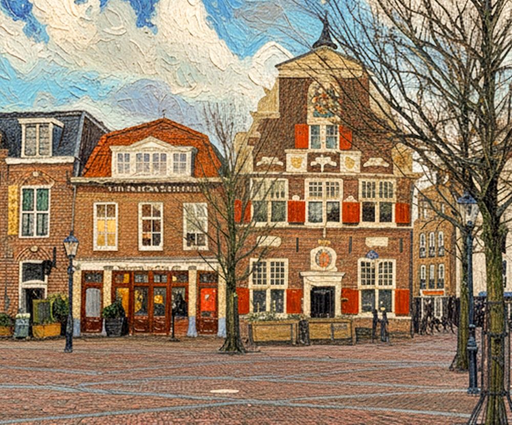 Bestelle das digitale Kunst Bild Der Wilhelminaplein in Naaldwijk. von Nicolaas Digi Art als Reproduktion auf Leinwand, Alu-Dibond, als Poster, Fototapete oder Acrylglasbild.