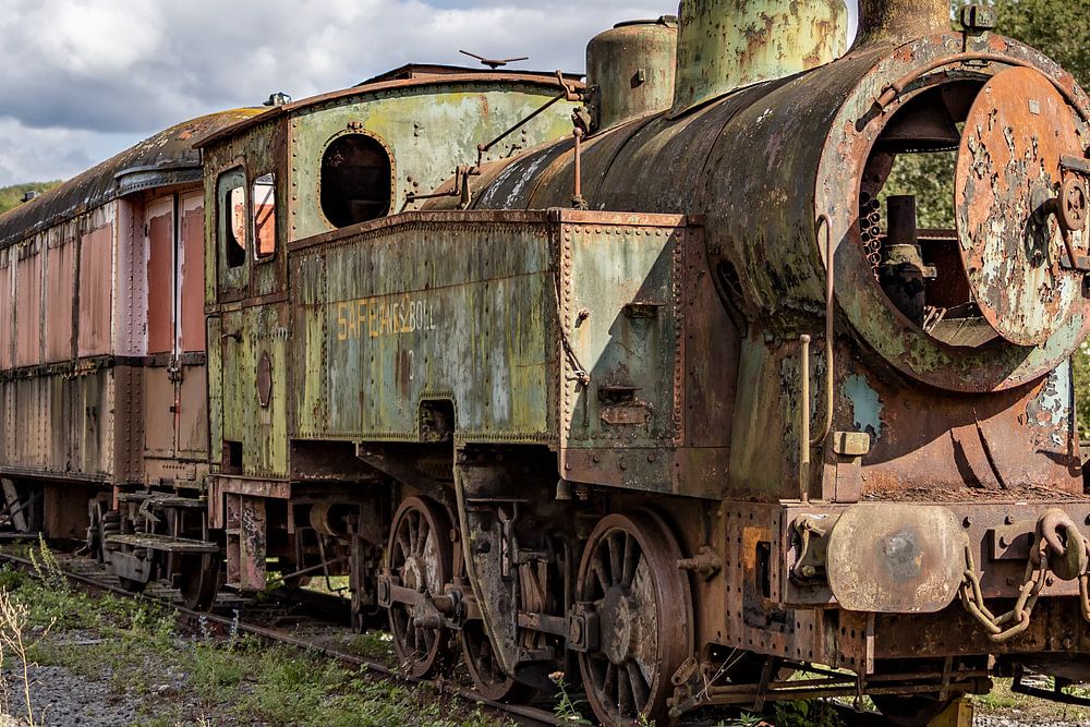 Rostige und verlassene Dampflokomotive in den belgischen Ardennen