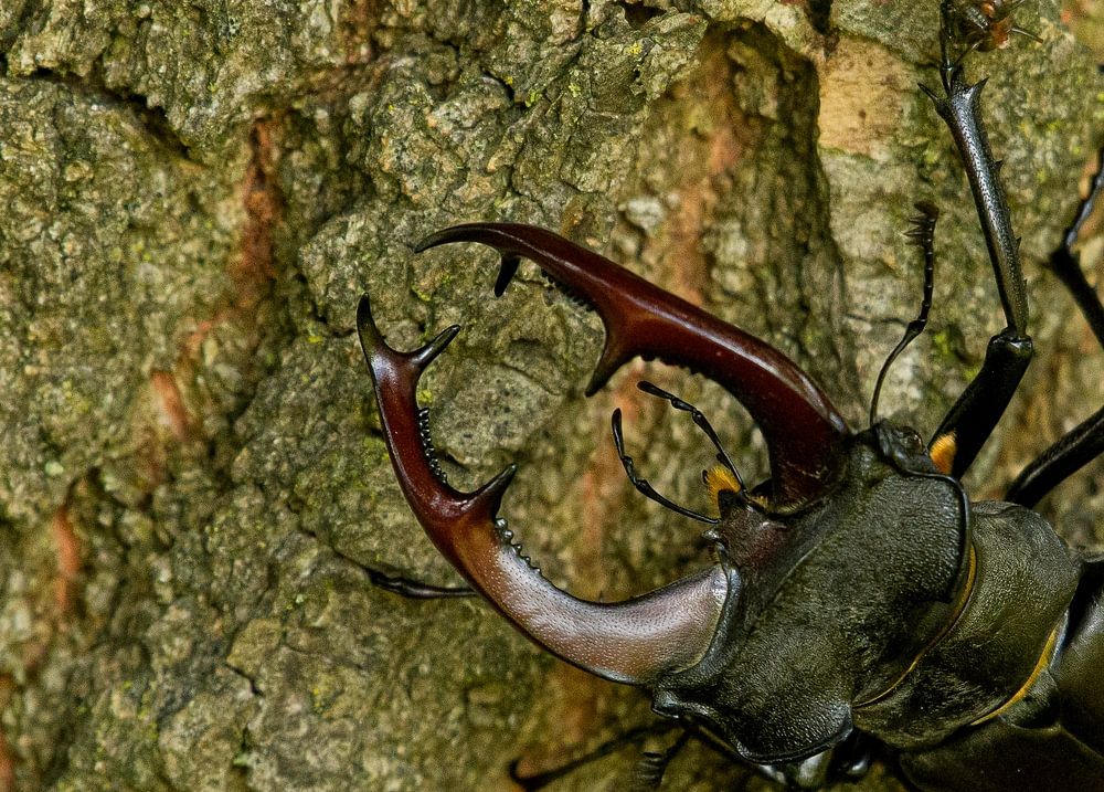Dieser männliche Fliegende Hirsch saß auf der Rinde einer Eiche.