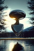 Treten Sie ein in die Zukunft mit Der flüssige Wächter, einer faszinierenden Verschmelzung von Technologie und Natur. Dieses Kunstwerk zeigt ein schwebendes, flüssig-metallisches Gebilde, das organische Kurven mit einer außerirdischen Ästhetik nahtlos verbindet. Die Struktur reflektiert ihre Umgebung mit spiegelgleicher Präzision und…