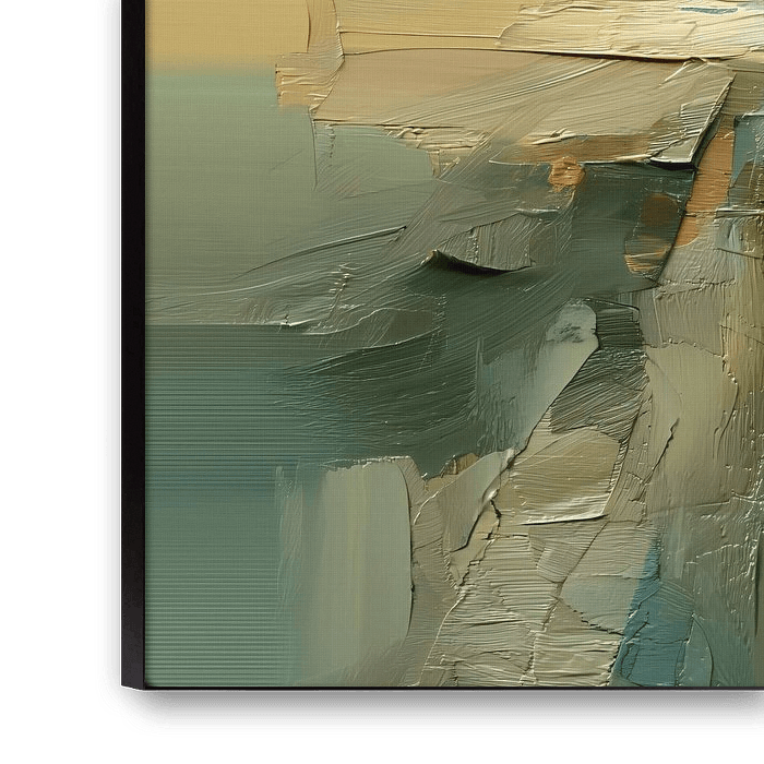 Impressionistisches Gemälde mit groben Pinselstrichen auf Leinwand in Erdtönen auf grünem Hintergrund.