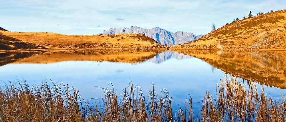 Der obere Paarsee in Dorfgastein mit der Spiegelung des Hochkönigs