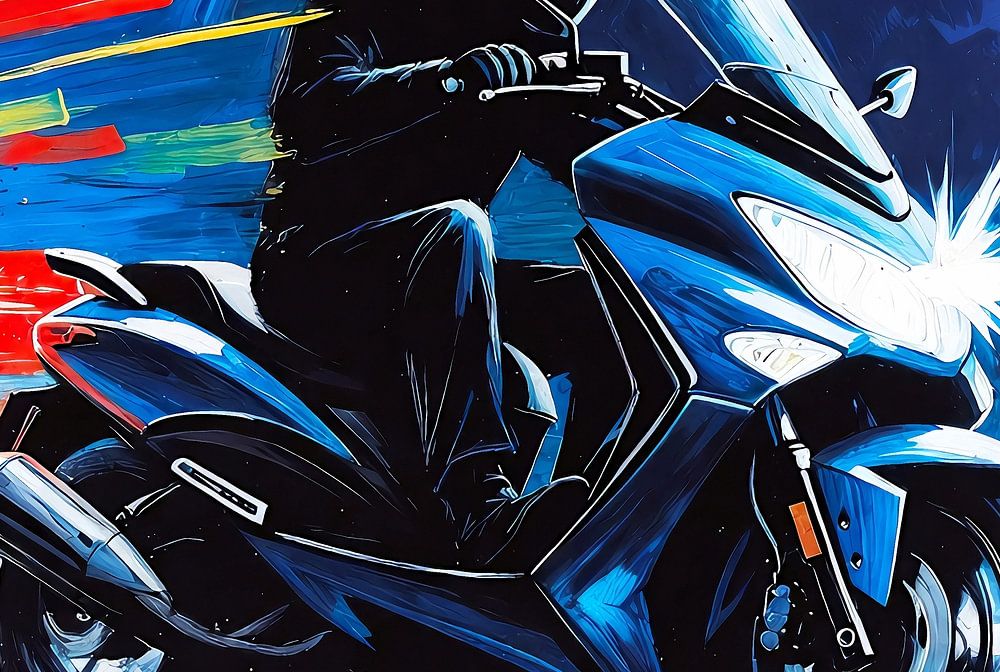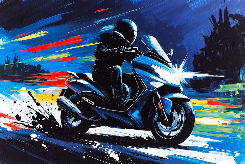 Bestelle das digitale Kunst Bild Der rasende Motorroller von DeVerviersBelgium als Reproduktion auf Leinwand, Alu-Dibond, als Poster, Fototapete oder Acrylglasbild.