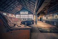 Der baufällige Kontrollraum eines kleinen Kraftwerks in einem stillgelegten Stahlwerk, das vor etwa 30 Jahren geschlossen wurde.
