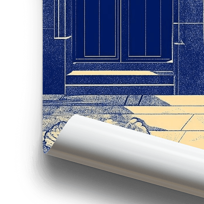 Vor einem Gebäude lehnen Fahrräder lässig an der Wand, eingerahmt von den heiteren Farben der Delfter Keramik. Dieses Kunstwerk ist eine Hommage an das niederländische Stadtleben und verbindet Tradition mit moderner Kunst. Inspiriert von einem Spaziergang in Delft wurde das ursprüngliche Bild - eine einfache Fotografie - durch einen…