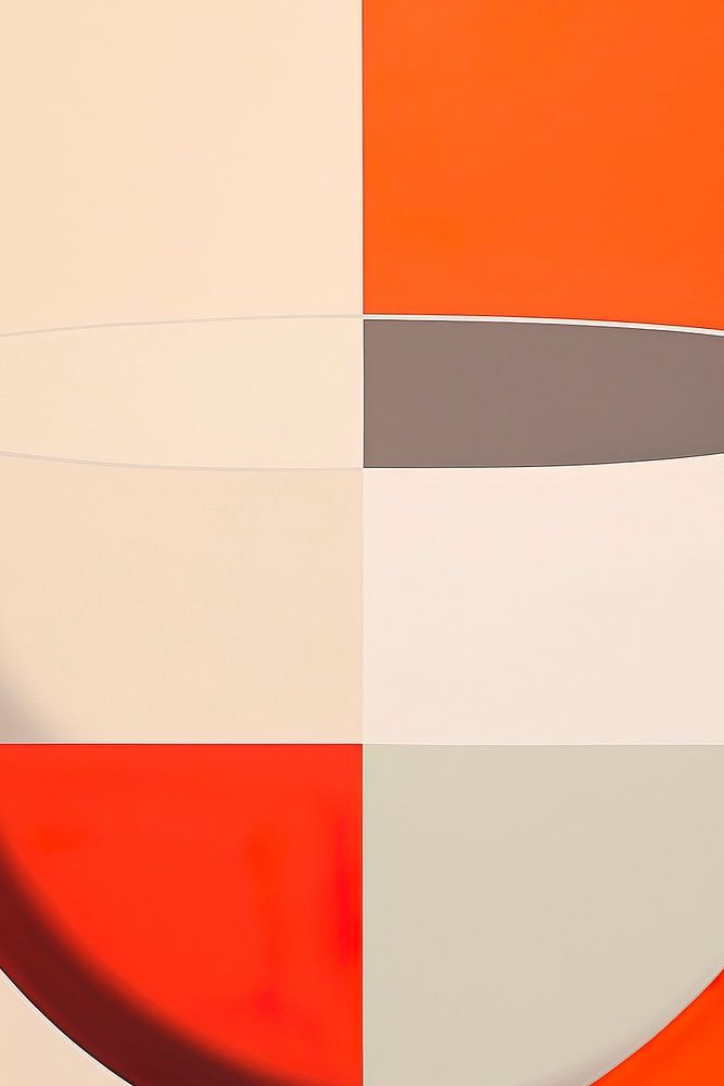 Die grafische Komposition einer Schale vor einem schlichten orange-beigen Hintergrund in einer symmetrischen Anordnung sorgt für eine starke visuelle Wirkung.