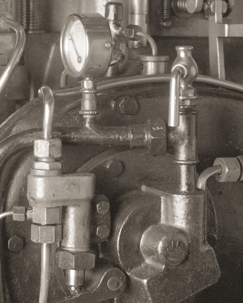Detailansicht eines historischen Schiffsmotors von Jan van der Schalie Analoge Fotografie