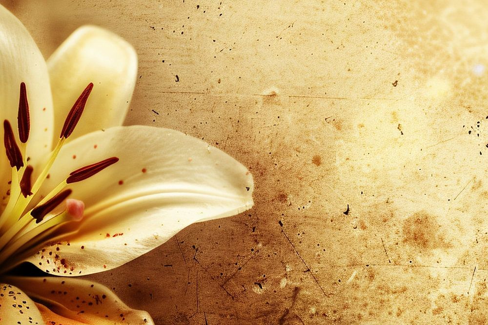 Dieses wunderschöne Bild zeigt eine elegante Lilie vor einem stimmungsvollen, vom Vintage-Stil inspirierten Hintergrund. Die warmen Sepiatöne und das detaillierte Blumendesign sorgen für einen raffinierten Look, der perfekt ist, um eine ruhige, klassische Atmosphäre in einem Raum zu schaffen. Das Kunstwerk strahlt ein Gefühl von Gelassenheit und zeitloser Schönheit aus und ist daher ideal für ein Schlafzimmer oder ein Büro. Ganz gleich, ob Sie auf der Suche nach einer subtilen Dekoration für Ihre Wände oder nach einem Blickfang sind, der Raffinesse ausstrahlt, diese Lilie mit ihren sanften Farbtönen und ihrem strukturierten Hintergrund bringt eine beruhigende Ästhetik in jeden Raum. Sie ist ein Kunstwerk, das mühelos einen Hauch von Natur und Eleganz in jedes Interieur bringt.