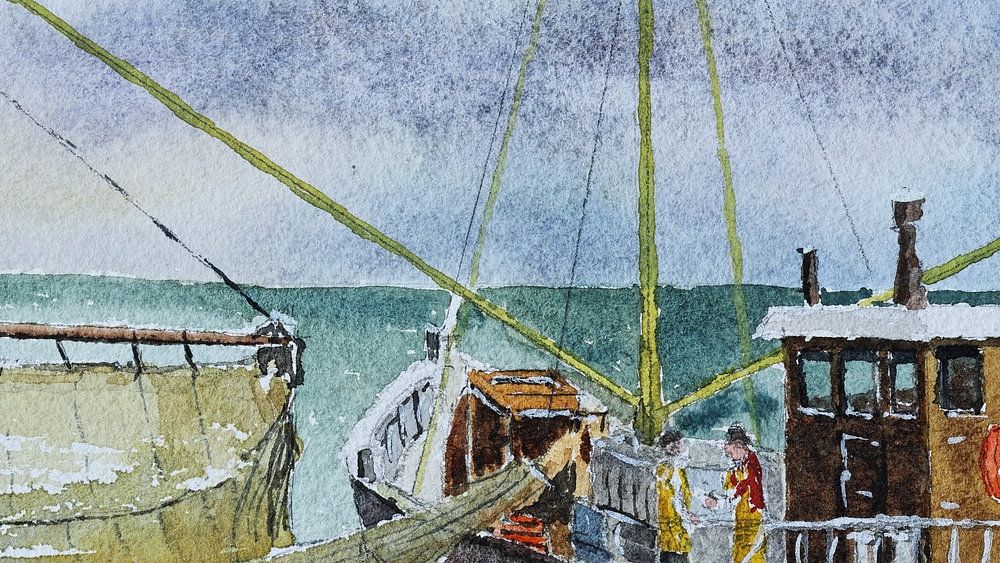 Bestelle diese Malerei Deutsches Fischerboot von Bert Groenhagen als Reproduktion auf Leinwand, Alu-Dibond, als Poster, Fototapete oder Acrylglasbild.