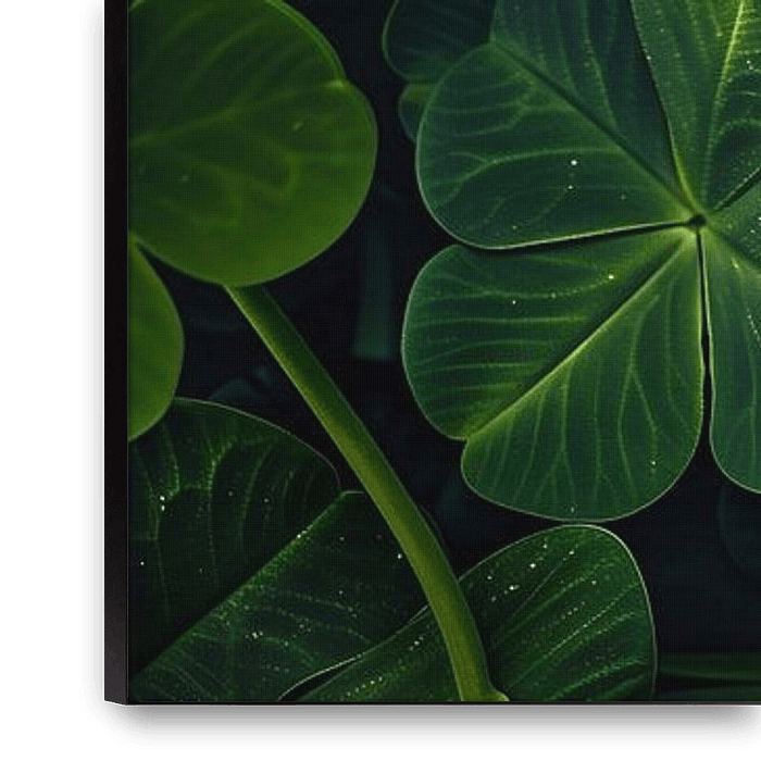 Eine Nahaufnahme von dicht gewachsenen Kleeblättern in unterschiedlichen Grüntönen. Die Blätter zeigen feine Details und symmetrische Muster, die durch weiches Licht hervorgehoben werden. Die Komposition vermittelt Frische, Natürlichkeit und eine angenehme Ruhe, während die Fülle der Blätter den Eindruck von Lebendigkeit verstärkt.