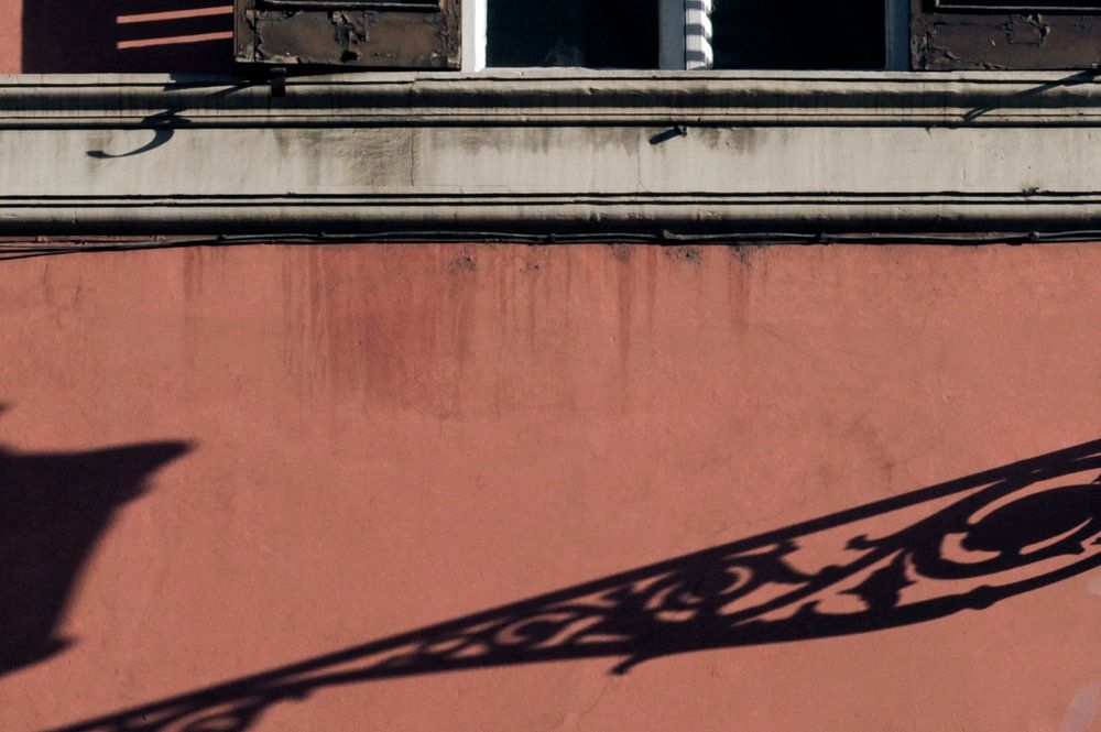 Die Abendsonne trifft auf eine Straßenbeleuchtung in Rom und wirft lange Schatten