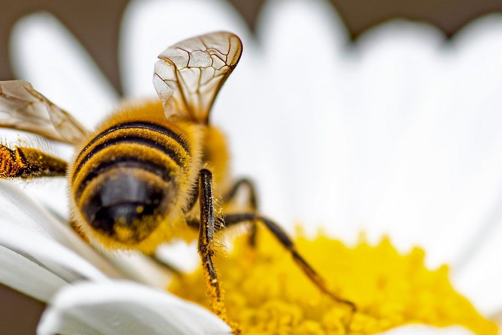 Die Biene, die das Gänseblümchen liebt