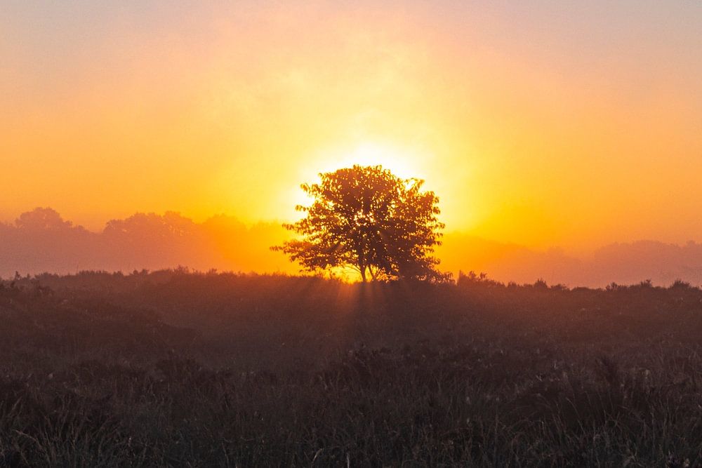 Dieses Foto wurde bei Sonnenaufgang in einem der vielen Moore in Drenthe aufgenommen. Durch die starke Abkühlung in der Nacht bildet sich Bodennebel, der sich auflöst (aufsteigt), sobald die Sonne über den Horizont kommt. Das Foto wurde im August bei Tagestemperaturen von über 30 °C und Nachttemperaturen von 10-12 °C aufgenommen.
