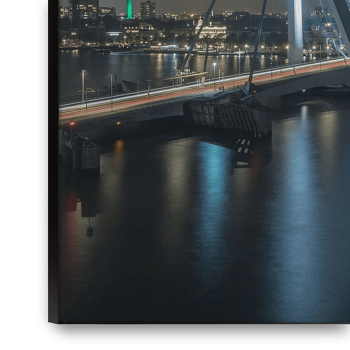 Die Erasmusbrücke in Rotterdam mit Blick auf den Euromast. Diese Bild ist Teil des fotografischen Kollektion von MS Fotografie. Klicken Sie rechts auf "Alle Bilder anschauen", um mehr Bilden aus der Kollektion zu sehen.