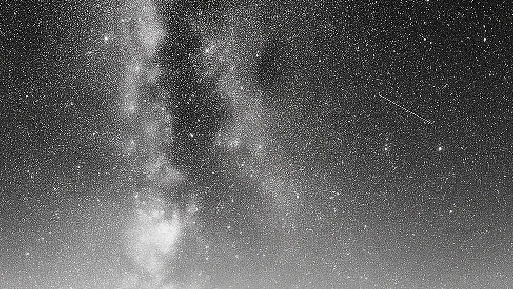 Diese Schwarz-Weiß-Fotografie bringt zwei Welten zusammen: die Erde und den Kosmos. Im Vordergrund sehen wir die monumentalen Steine von Stonehenge, dunkel und still, wie Wächter der Zeit. Ihre massiven Formen stehen fest in der Landschaft und symbolisieren Tausende von Jahren der Geschichte und des Geheimnisses. Über ihnen erstreckt sich ein unendliches Universum: Die Milchstraße erstrahlt in ihrer ganzen Pracht, ein Fluss aus Licht und Staubwolken, der sich von Horizont zu Horizont erstreckt.