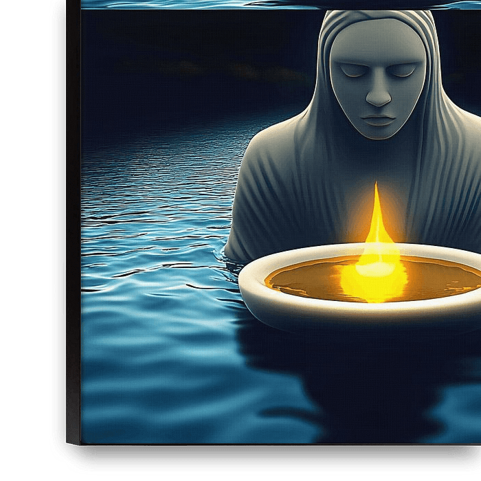 Bestelle das digitale Kunst Bild Die Flamme des Wasserhüters von Vythryd Arts als Reproduktion auf Leinwand, Alu-Dibond, als Poster, Fototapete oder Acrylglasbild.