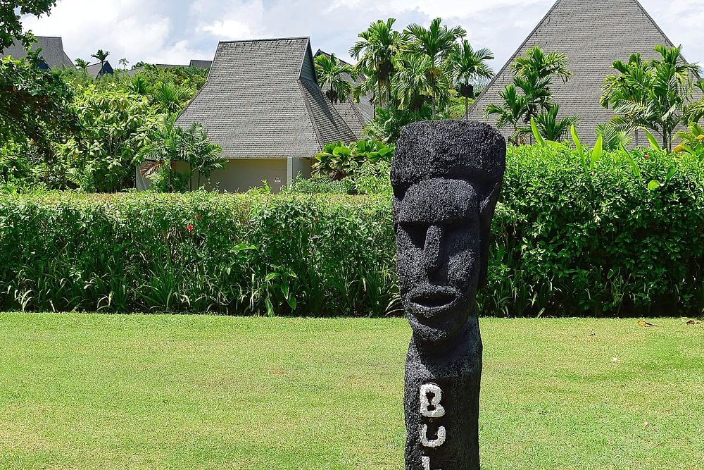 Eine der wenigen Bushaltestellen am Intercontinental Resort in der Nähe der kleinen Gemeinde Sanasana auf der Hauptinsel Fidschi. Der fidschianische Gruß lautet 'Bula' der Busservice des Resorts wird Bulabus genannt.