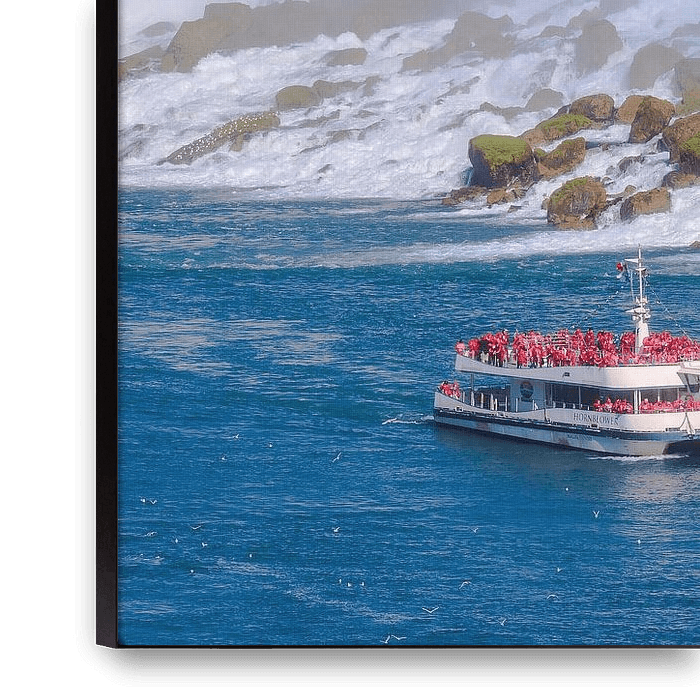 Der Hornblower beladen mit Touristen, die zu den Amerikanischen Fällen in einem Teil der Niagarafälle segeln, Ontario, Kanada