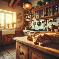 Die Katze schläft in der Küche