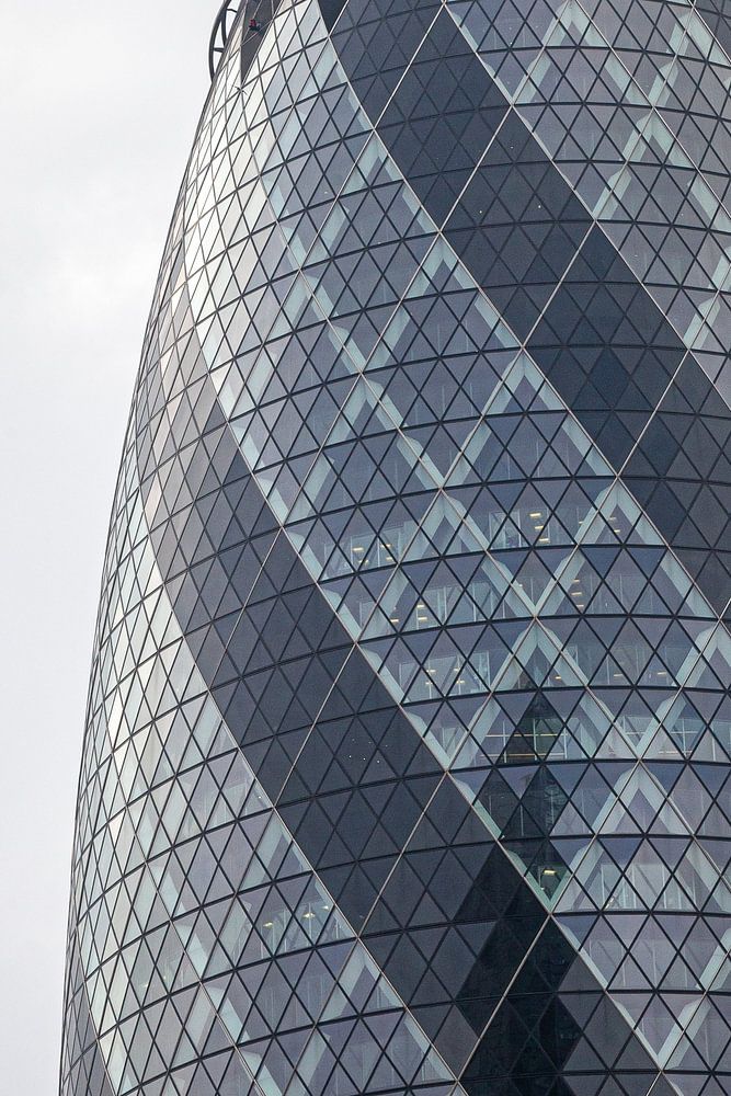 The Gherkin ist ein ungewöhnlicher Wolkenkratzer im Londoner Finanzviertel. Mit seinem innovativen, spiralförmigen Design und seiner besonderen Form erinnert das Gebäude stark an eine Gurke. Aus diesem Grund und wegen seiner wichtigen wirtschaftlichen Funktion ist es heute eines der bekanntesten Bauwerke in der Londoner Skyline.