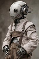 Dieses Bild zeigt eine künstliche Figur, die eine menschliche Rolle nicht nur trägt, sondern bewusst inszeniert. Die Haltung ist locker, beinahe selbstverständlich. Hände ruhen an der Hüfte, der Oberkörper ist leicht gedreht. Es ist die Pose einer Person, die weiß, wie sie wahrgenommen werden möchte. Genau darin liegt die subtile…