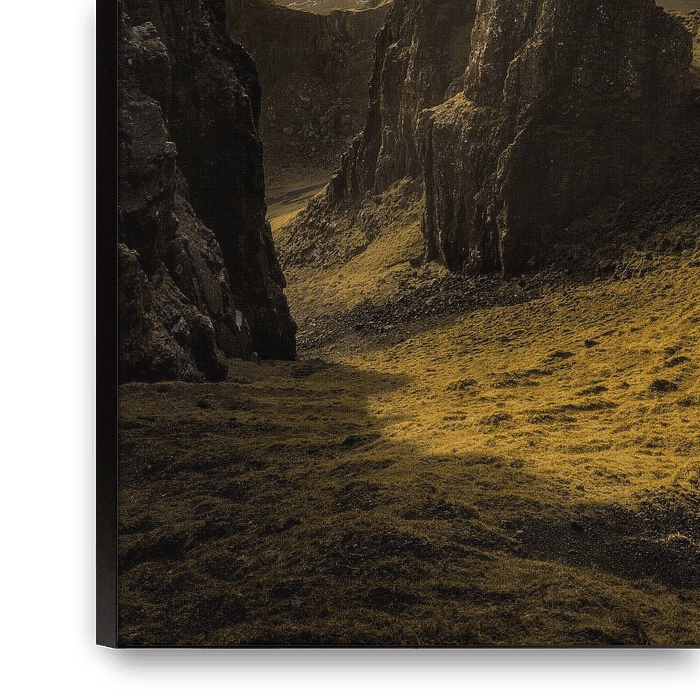 Bestelle dieses Landschafts-Wandbild Die Nadel im Quaraing auf der Isle of Skye in Schottland von Jos Pannekoek als Reproduktion auf Leinwand, Alu-Dibond, als Poster, Fototapete oder Acrylglasbild.