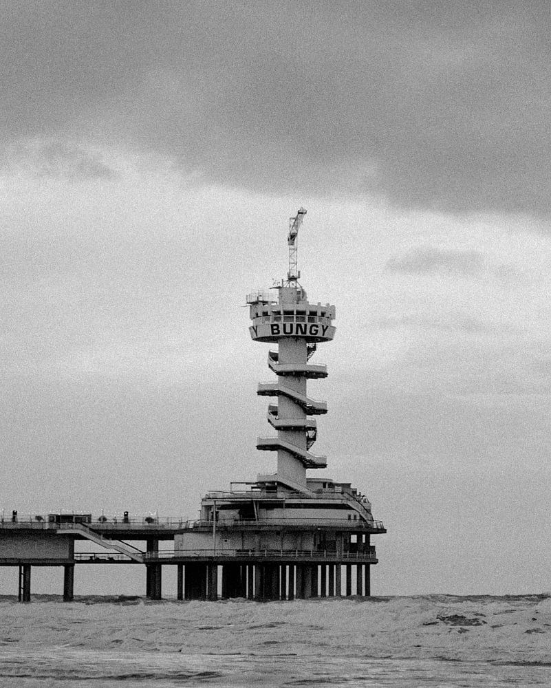 Analoges Foto des Scheveninger Piers an einem stupiden Tag.