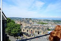 Ein herrlicher Blick wie jeder andere über die Stadt Edinburgh in Schottland, Vereinigtes Königreich. Die Rothaarige in der Ecke macht es meiner Meinung nach noch ein bisschen interessanter.