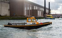 Die Ruderer im Hafen von Rotterdam. Die Ruderer sind auf dem Weg zum nächsten Schiff, um beim Lösen der Taue oder beim Festmachen an Pollern, Bojen und/oder Anlegepfählen zu helfen. Die Hafenarbeiter sind Tag und Nacht im Einsatz, bei Regen, Wind und Sturm. Aber auch an schönen Tagen läuft der Hafen von Rotterdam auf Hochtouren. Die…