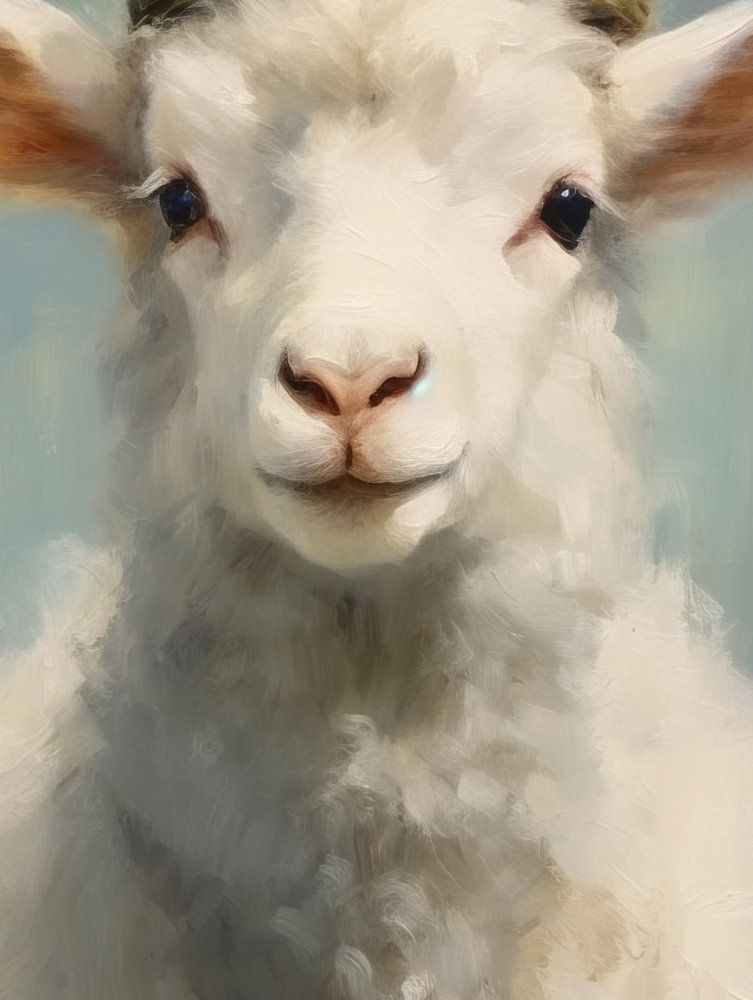 Das Schaf, das sich einbildet, König zu sein. Retro-Stil, Ölgemälde. Buntes Porträt mit einem Augenzwinkern. Wählen Sie Ihre eigene Größe und Material für diese Arbeit und machen es zu Ihrem Interieur passen.