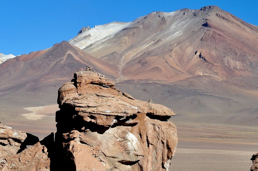Die Siloli-Wüste ist auch für ihre atemberaubenden Kontraste bekannt. Die vibrierenden Farben der umliegenden Berge vermischen sich mit dem Ockerton des Bodens und schaffen so eine spektakuläre Leinwand unter einem oft klaren blauen Himmel. Trotz ihrer feindlichen Umgebung beherbergt diese Wüste eine angepasste Tierwelt, darunter Vicuñas und Andenfüchse.