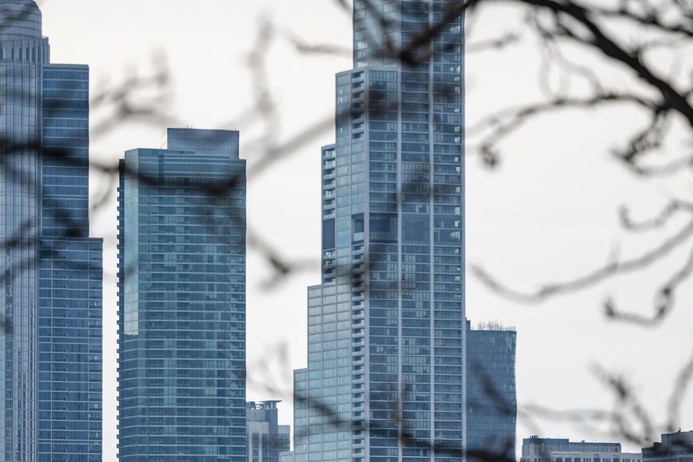 Die Skyline von Chicago durch die Bäume