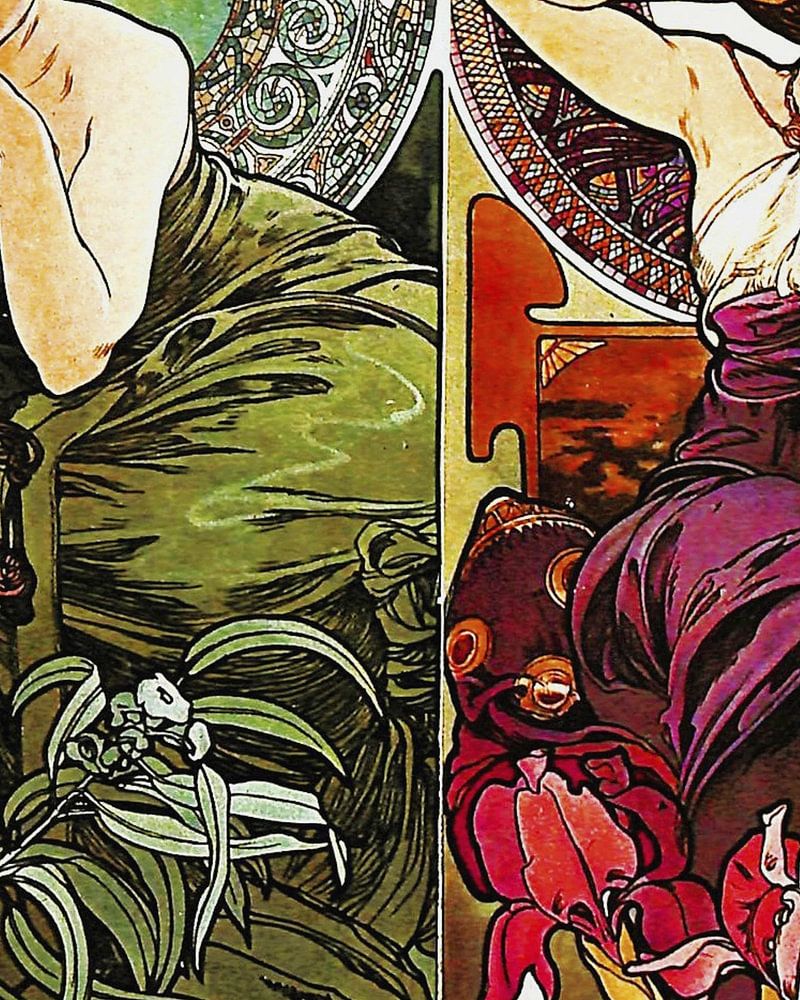 Alfons Mucha war ein Maler, der in der Zeit des Art déco lebte. Er hat viele Frauenbilder gemalt, schön und farbenfroh und manchmal erotisch.