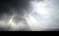 Bestelle das Foto Die Sonne bricht durch eine Gewitterwolke von Lensw0rld als Reproduktion auf Leinwand, Alu-Dibond, als Poster, Fototapete oder Acrylglasbild.