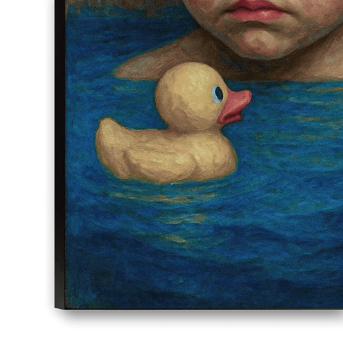 Dieses Werk fängt die Verletzlichkeit eines Kindes in einem Moment stiller Rührung ein. Die warmen Töne und das ruhige Wasser schaffen eine verträumte Atmosphäre, die sofort berührt. Perfekt für alle, die Kunst suchen, die berührt und mit nur einem Blick eine Geschichte erzählt.