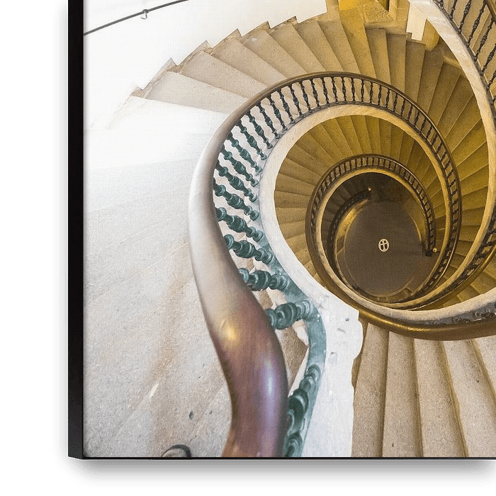 Bestelle das Foto Die Wendeltreppe im Museo do Pobo Galego von Peter Haastrecht, van als Reproduktion auf Leinwand, Alu-Dibond, als Poster, Fototapete oder Acrylglasbild.