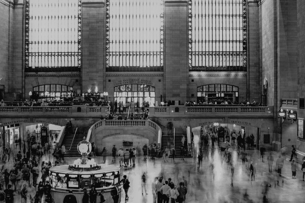Die Zeit vergeht am Grand Central Bahnhof in New York. Die Menschen beeilen sich, ihren Zug zu erwischen oder nach Hause zu fahren. Dieses Bild ist auch in Farbe erhältlich, die Sie in meinem Shop finden können.