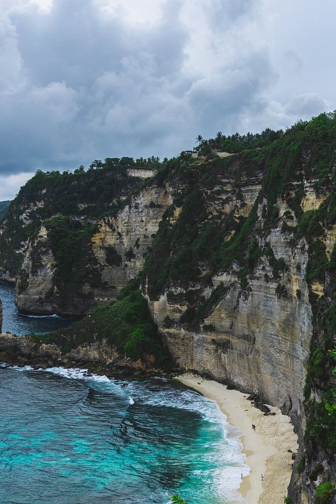 Der Beginn eines heftigen Abstiegs. Es beginnt mit einer guten Treppe, die sich schnell in Felsen verwandelt. Über eine Treppe gelangen Sie zu einem wunderschönen Strand zwischen den hohen Klippen.
