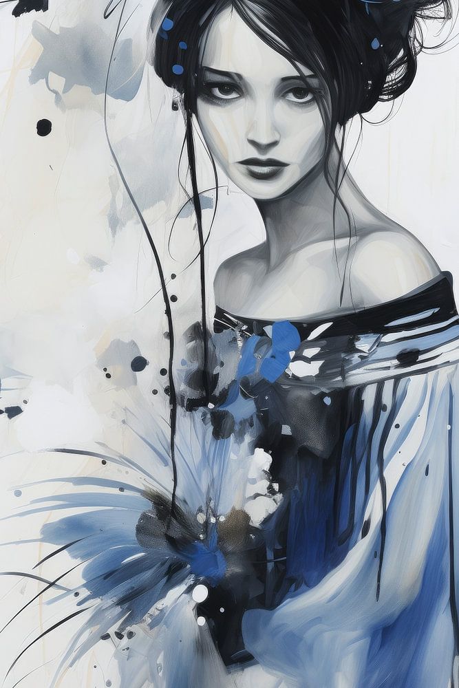 Acryltechnik - junge Dame in Blau und Schwarz