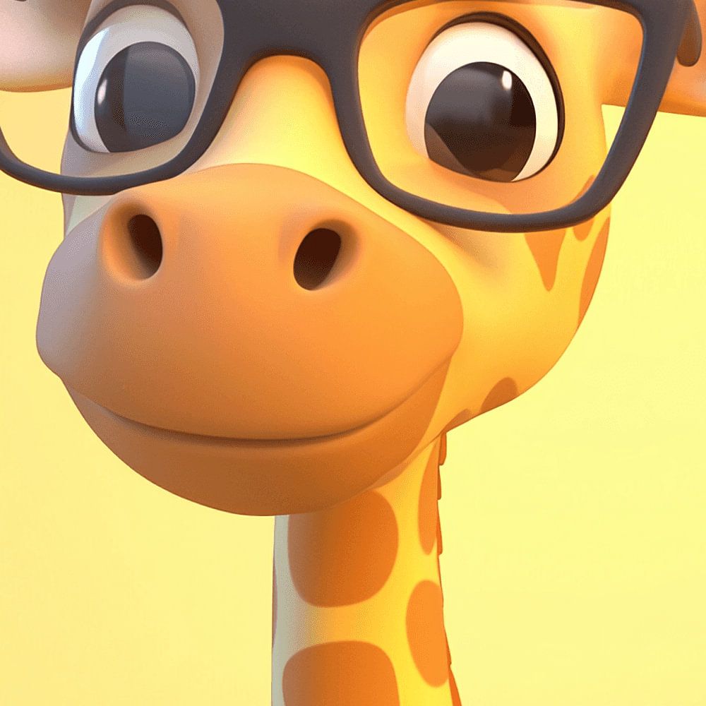 Dieses humorvolle Porträt einer Giraffe mit Brille ist eine perfekte Ergänzung für jedes Kinderzimmer.