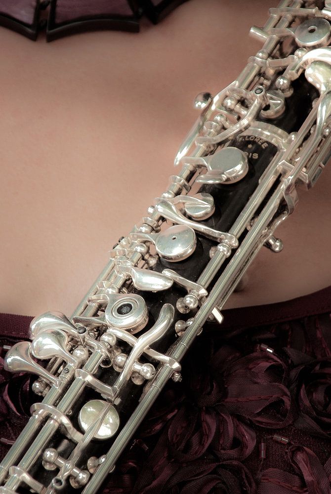 Die Oboe ist von der Musiker in einem roten Konzert-Kleid festgehalten. Der Musiker macht schönen Musik mit diesem Doppelrohrblatt-Instrument, dessen Klang ist allgegenwärtig und weit trägt. Die Hobo ist im 17. Jahrhundert aus der Schalmei. Die Hobo ist ein Blasinstrument, und dieses Wort stammt aus dem französischen Hautbois (Hochwald).
