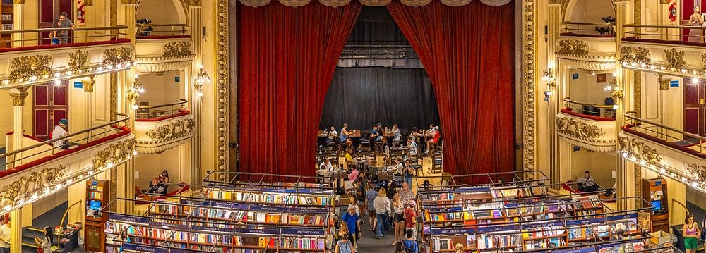 El Ateneo Grand Splendid in Buenos Aires ist eine der beeindruckendsten Buchhandlungen der Welt. Ursprünglich wurde das Gebäude 1919 als prachtvolles Theater eröffnet, später in ein Kino umgewandelt und schließlich im Jahr 2000 zur Buchhandlung umgestaltet. Die ursprüngliche Theaterarchitektur wurde weitgehend erhalten, wodurch der Ort eine einzigartige und fast magische Atmosphäre ausstrahlt. Die Bühne, die früher für Aufführungen genutzt wurde, dient heute als gemütlicher Lesebereich mit bequemen Sesseln.